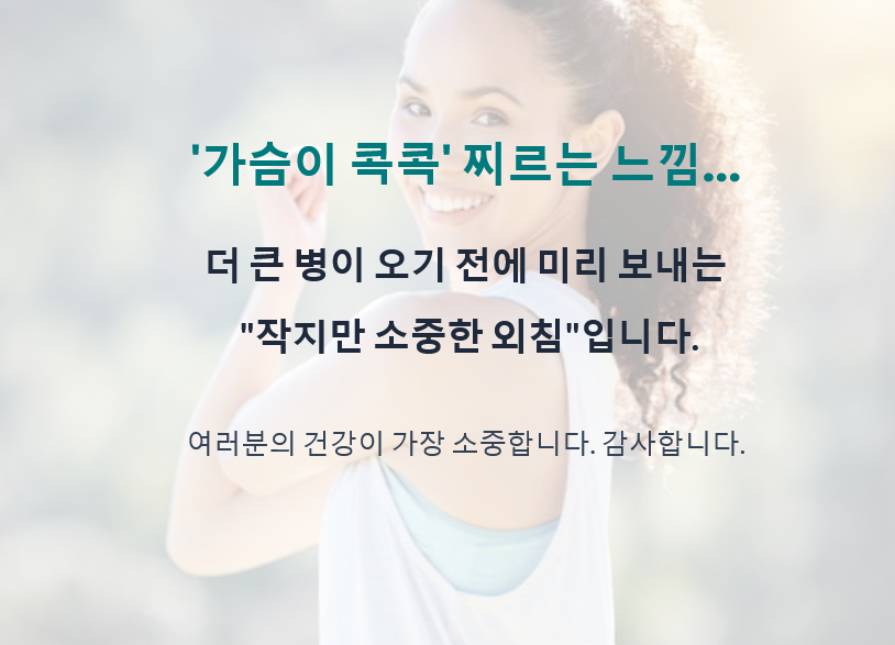 하지만 여러분! 제가 오늘 이 포스팅을 쓰는 이유는 딱 하나입니다. 우리 몸이 보내는 신호, 특히 '가슴'이 보내는 신호는 절대! 절대로! 가볍게 여겨서는 안 된다는 말씀을 드리기 위해서예요!