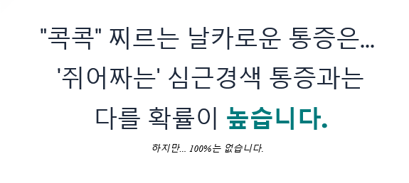 앞서 '콕콕' 찌르는 통증은 심장 문제일 확률이 '상대적으로' 낮다고 말씀드렸죠. 하지만 그건 어디까지나 '상대적'인 이야기입니다.